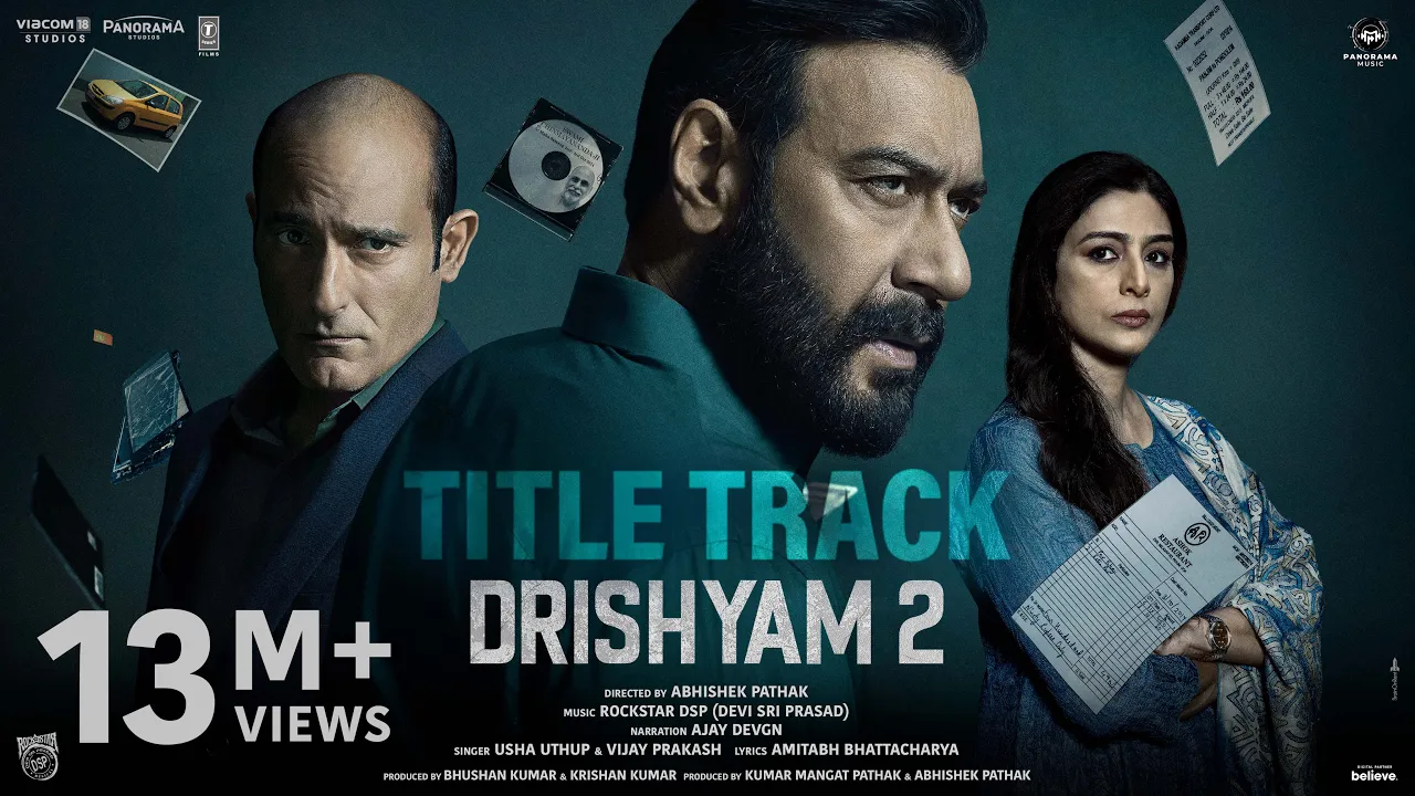 Film CastAjay Devgn, Akshaye Khanna, Tabu, Shriya Saran, Rajat Kapoor, Saurabh Shukla, Ishita Dutta, Mrunal Jadhav, Kamlesh Sawant, Yogesh Soman, Siddharth Bodke, Nishant Singh, Neha Joshi, Ajeeth Singh, Sharad Bhutadiya, Anil Rasal, Prathmesh Parab, Ashmita Jaggi, Ramchandra Singh, Samvedana, Sameer Deshpande, Prashal Jain, Haresh Khatri, Abhishek Kulkarni, Vineeth M.V.SingerJubin Nautiyal, King, Usha Uthup, Vijay Prakash, Ajay DevgnLyricistAmitabh BhattacharyaMusic ByDevi Sri PrasadDirectorAbhishek Pathak, Bhushan Kumar, Krishan Kumar, Kumar Mangat PathakProducerAbhishek PathakExternal LinksDrishyam 2 at IMDB Drishyam 2 at WikipediaYouTubeDrishyam 2 at YT