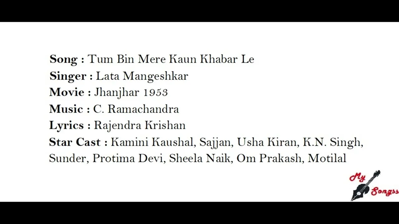 Film CastMotilal, Kamini Kaushal, K N Singh, Sunder, Usha Kiran, Sajjan, Om ParkeshSingerLata Mangeshkar, Madhubala ZaveriLyricistRajindra KrishanMusic ByChitalkar RamchandraDirectorKidar SharmaExternal LinksJhanjhar at IMDB