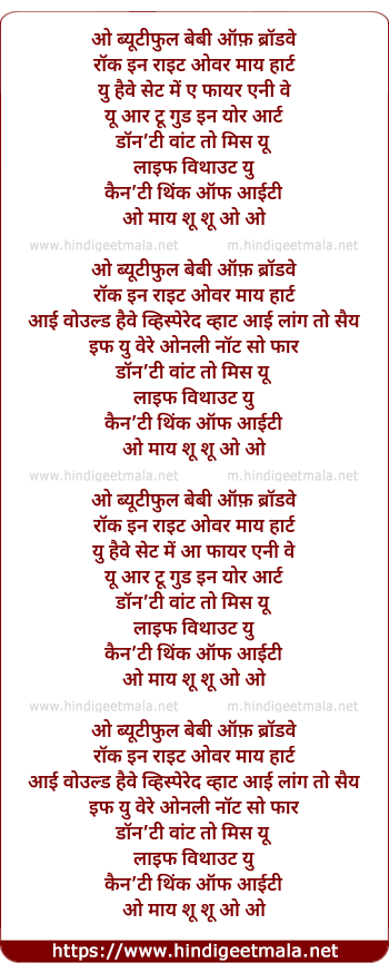 Lyrics of A Beautiful Baby Of Broadway - ए ब्यूटीफुल बेबी ऑफ़ ब्रॉडवे