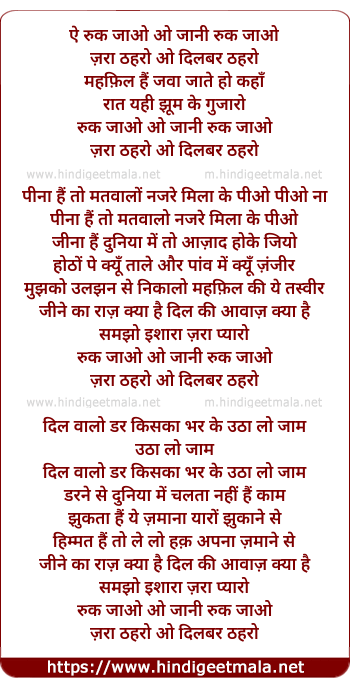Lyrics of Ruk Jaao O Jaani Ruk Jaao - रुक जाओ ओ जानी रुक जाओ