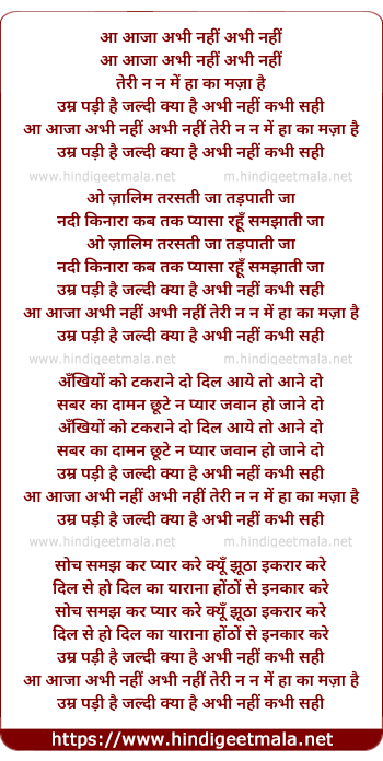 Lyrics of Aa Aaja Abhi Nahi Abhi Nahi - आ आजा अभी नहीं अभी नहीं