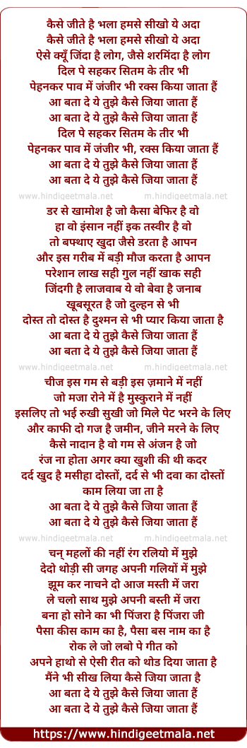 Lyrics of Aa Bata De Ye Tujhe Kaise Jiya Jata Hai - आ बता दें ये तुझे कैसे जिया जाता हैं