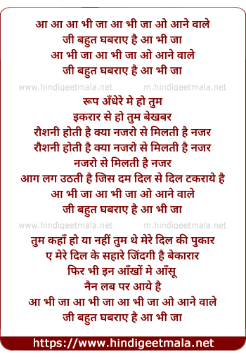 Lyrics of Aa Bhi Ja, Aa Bhi Ja O Aanewale - आ आ आ भी जा आ भी जा ओ आने वाले