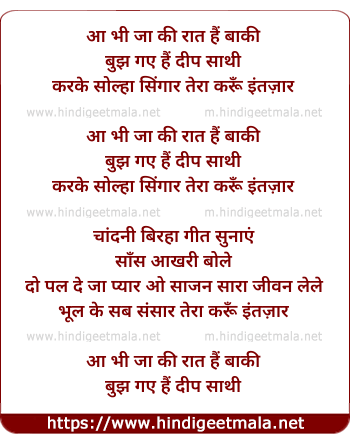 Lyrics of Aa Bhi Ja Ke Raat Hai Baaki - आ भी जा की रात हैं बाकी