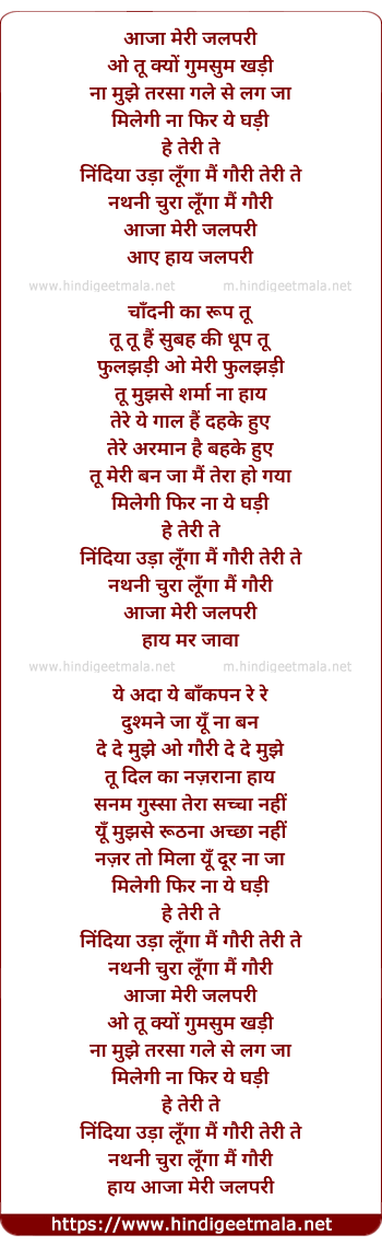 Lyrics of Aa Ja Meri Jalpari - आजा मेरी जलपरी