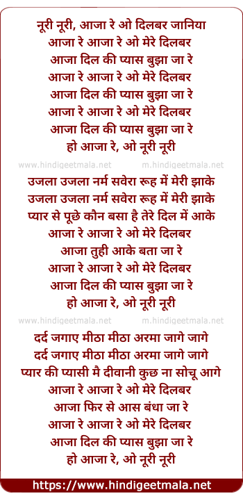 Lyrics of Aa Ja Re O Mere Dilbar Aaja - आ जा रे ओ मेरे दिलबर आजा