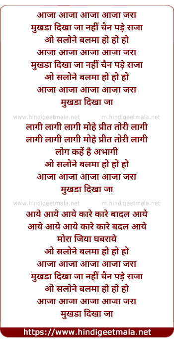 Lyrics of Aaja Zara Mukhda Dikha Ja - आजा जरा मुखड़ा दिखा जा