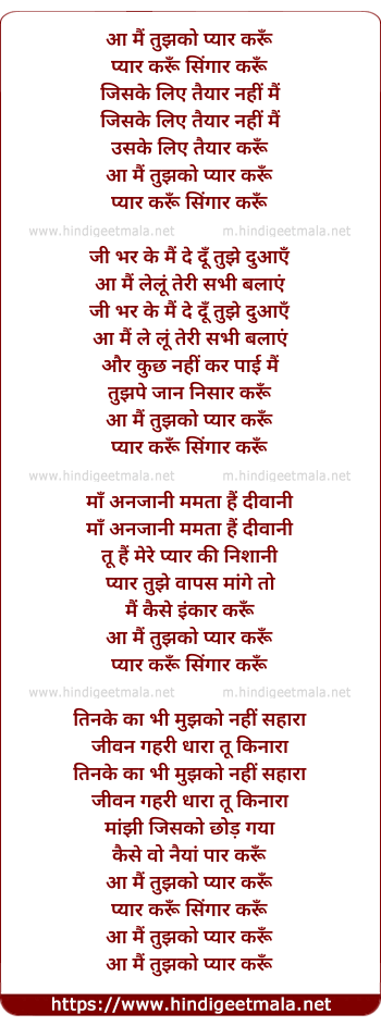 Lyrics of Aa Mai Tujhko Pyar Karu - आ मैं तुझको प्यार करूँ