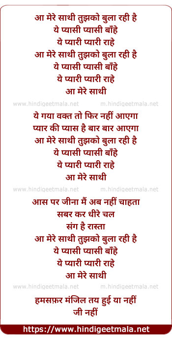 Lyrics of Aa Mere Sathi Tujhko Bhula Rahi Hai - आ मेरे साथी तुझको बुला रही है