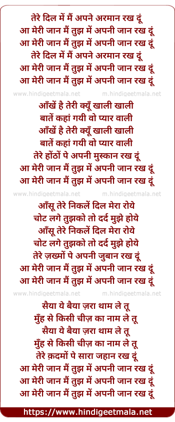 Lyrics of Tere Dil Me Main Apne Arman Rakh Du - तेरे दिल में मैं अपने अरमान रख दूं