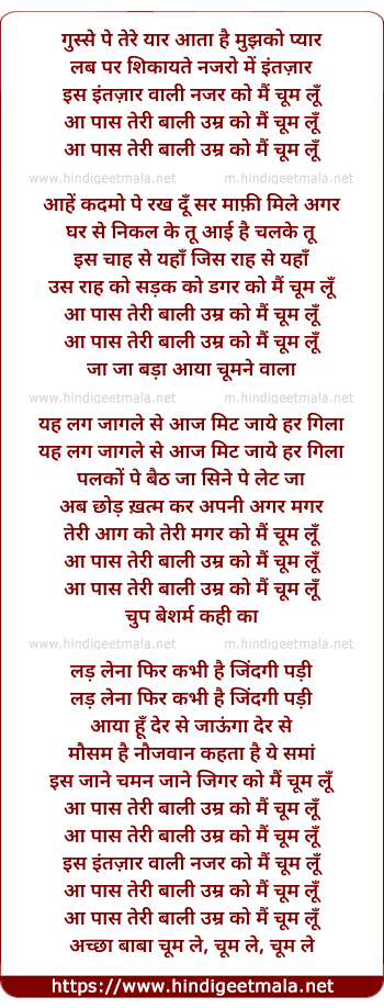 aa pas teri baali umar ko main chum lu