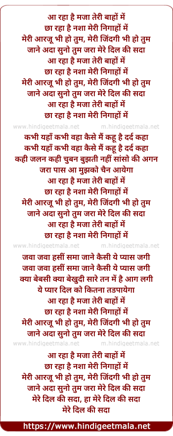 Lyrics of Aa Raha Hai Maza Teri Baahon Mein - आ रहा है मजा तेरी बाहों में