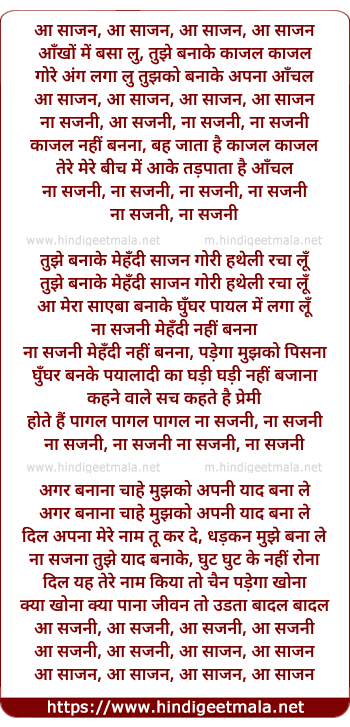 aa sajani, aa sajani, aa sajan, aa sajan