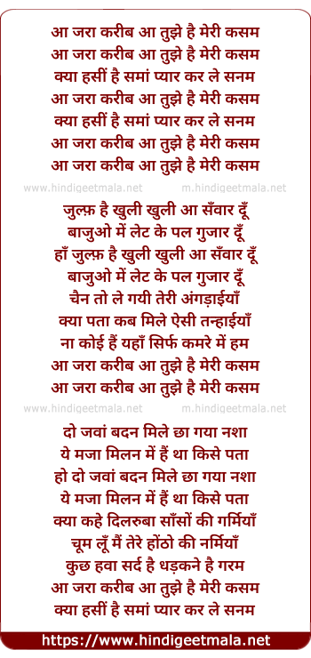 Lyrics of Aa Zara Kareeb Aa - आ जरा करीब आ