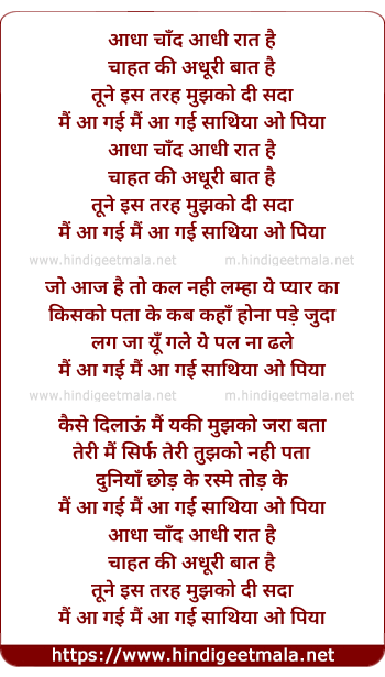 Lyrics of Aadha Chand Aadhi Raat Hai - आधा चाँद आधी रात है