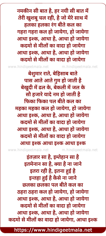 Lyrics of Aadha Ishq, Aadha Hai, Adha Ho Jaayega - आधा इश्क, आधा है, आधा हो जायेगा