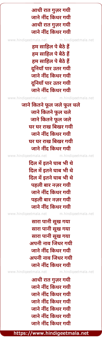 Lyrics of Aadhi Raat Guzar Gayi - आधी रात गुज़र गयी
