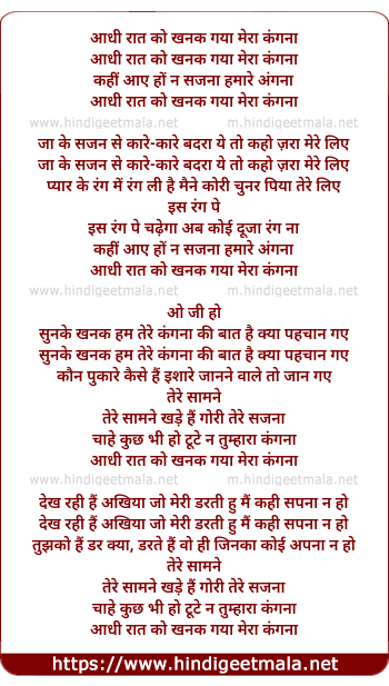 Lyrics of Aadhi Raat Ko Khanak Gayaa Meraa Kanganaa - आधी रात को खनक गया मेरा कंगना