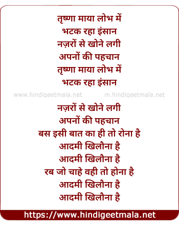 Lyrics of Aadmi Khilona Hai (Sad) - आदमी खिलौना है