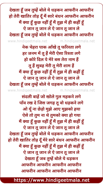Aafrin Aafrin - देखता हूँ जब तुम्हें बोले ये धड़कन