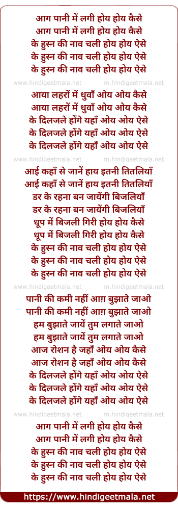 Lyrics of Aag Panee Me Lagee, Hoy Hoy Kaise - आग पानी में लगी होय होय कैसे