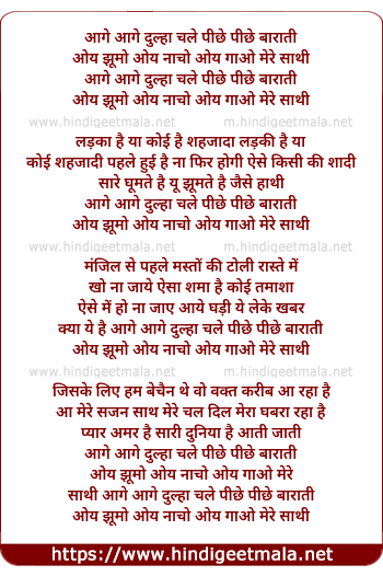 Lyrics of Aage Aage Dulha Chale Piche Piche Barati - आगे आगे दुल्हा चले पीछे पीछे बाराती