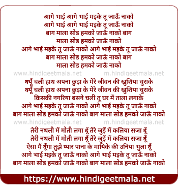 Lyrics of Aage Bai Maike Tu Jau Nako - आगे भाई माइके तू जाऊँ नाको