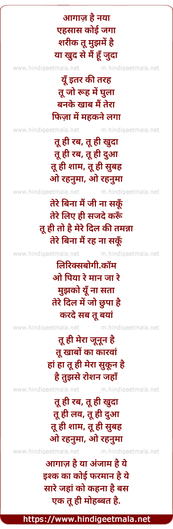 tu hi rab tu hi khuda tu hi lab tu hi dua