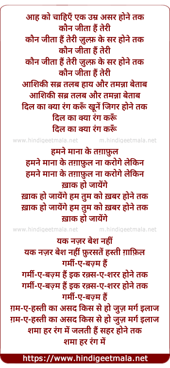 Lyrics of Aah Ko Chaahiye Ek Umr Asar Hone Tak - आह को चाहिएँ एक उम्र असर होने तक