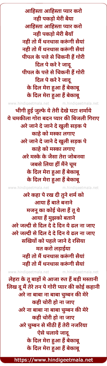 Lyrics of Aahista Aahista Pyaar - आहिस्ता आहिस्ता प्यार