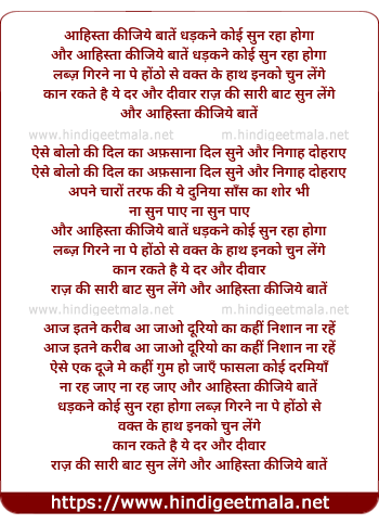 Lyrics of Aahista Kijiye Baate - आहिस्ता कीजिये बातें धड़कने कोई सुन रहा होगा