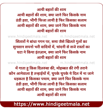 Lyrics of Aai Baharon Ki Shaam - आयी बहारों की शाम