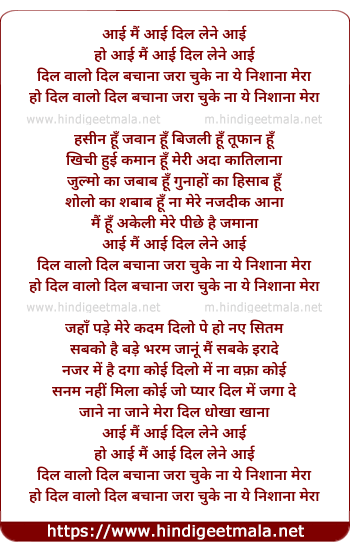 Lyrics of Aai Mai Aai Dil Lene Aai - आई मैं आई दिल लेने आई