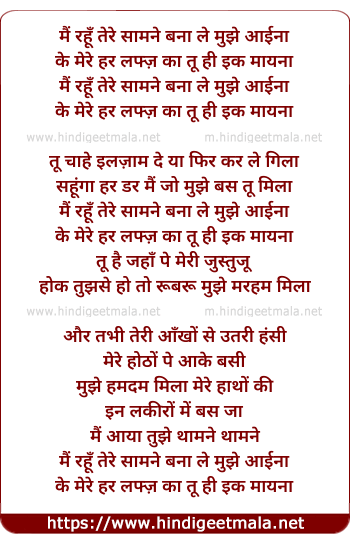 main rahu tere saamne bana le mujhe aaina