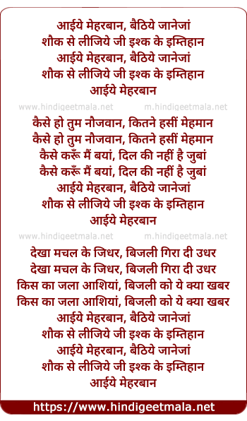 Lyrics of Aaiye Meherbaan - आईये मेहरबान, बैठिये जानेजां