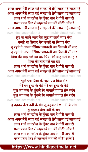 Lyrics of Aaj Agar Meri Laaj Gayi - आज अगर मेरी लाज गई