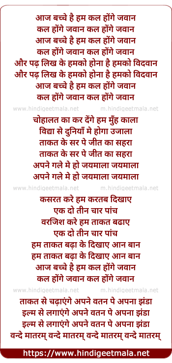 Lyrics of Aaj Bachhe Hai Hum Kal Honge Jawan - आज बच्चे है हम कल होंगे जवान