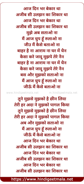 Lyrics of Aaj Din Bhar - आज दिन भर बेकार था