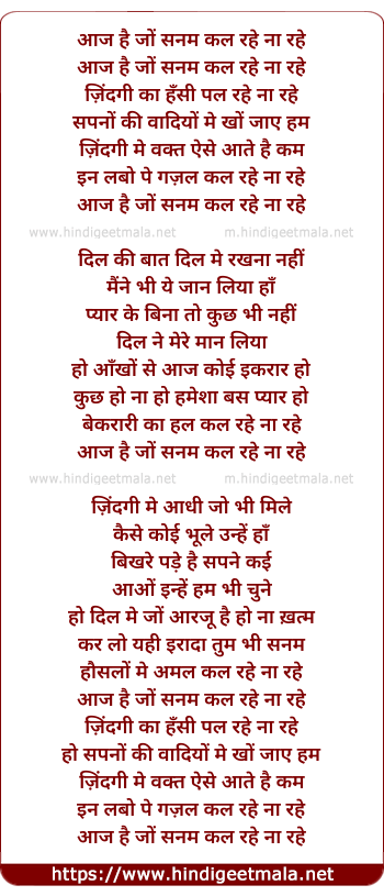 Lyrics of Aaj Hai Jo Sanam - आज है जों सनम