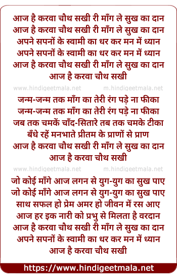 Lyrics of Aaj Hai Karva Chauth - आज है करवा चौथ