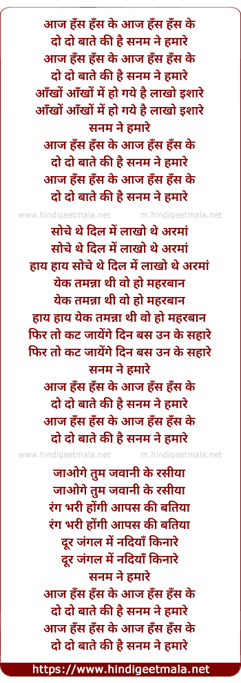 Lyrics of Aaj Hans Hans Ke Do Do Bate - आज हँस हँस के आज हँस हँस के