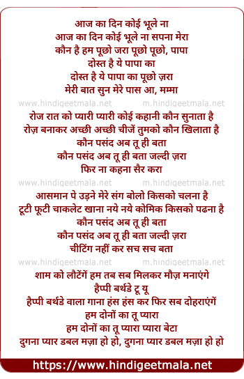 Lyrics of Aaj Ka Din Koi Bhule Na Sapna Mera - आज का दिन कोई भूले ना सपना मेरा