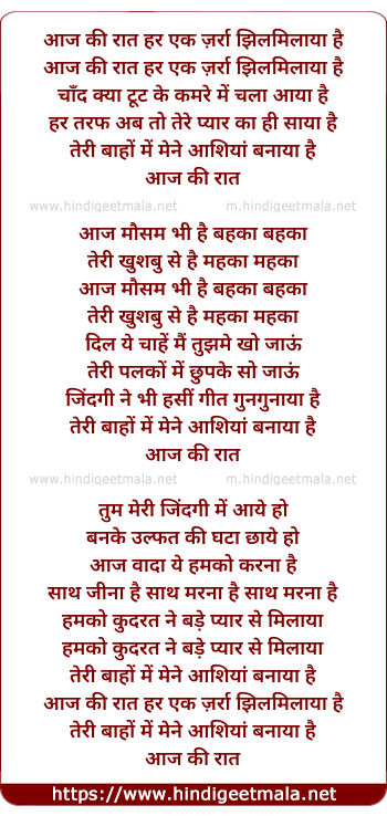 Poetic Translation - Lyrics of Aaj Kee Raat - आज की रात