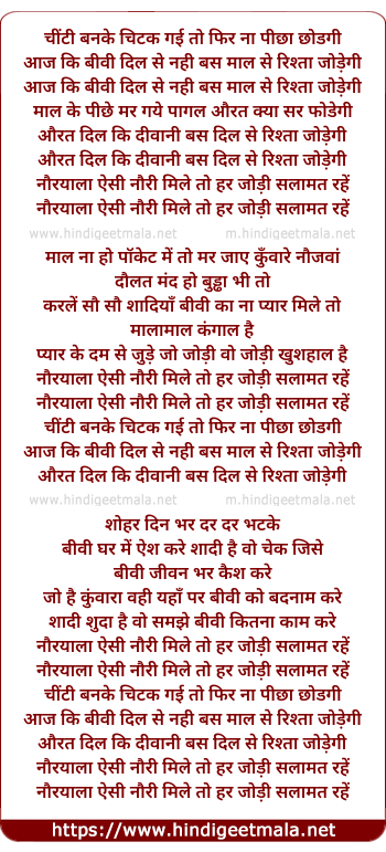 Lyrics of Aaj Ki Biwi Dil Se Nahi - आज कि बीवी दिल से नही