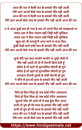 Lyrics of Aaj Ki Raat Ye Kaisi Raat Ke Humko Nind Nahi Aati - आज की रात ये कैसी रात के हमको नींद नहीं आती