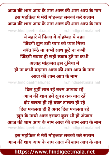 Lyrics of Aaj Ki Shaam Aap Ke Naam - आज की शाम आप के नाम