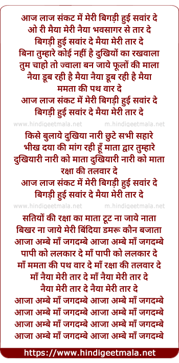 Lyrics of Aaj Laaj Sankat Me Meri - आज लाज संकट में मेरी