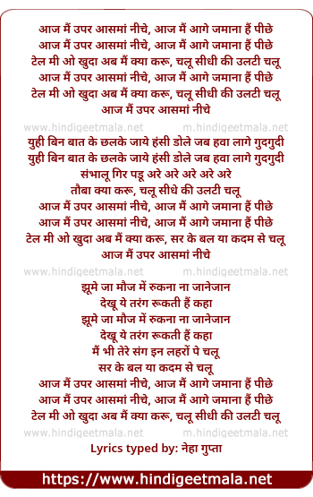 Lyrics of Aaj Mai Upar Aasman Niche - आज मैं उपर आसमां नीचे