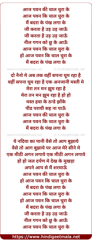 Lyrics of Aaj Pawan Ki Chal Chura Ke - आज पवन की चाल चुरा के