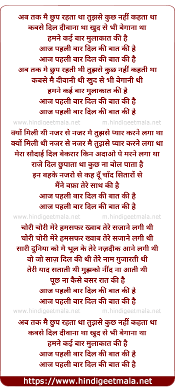 Lyrics of Aaj Pehli Baar Dil Ki Baat Ki Hai - आज पहली बार दिल की बात की है